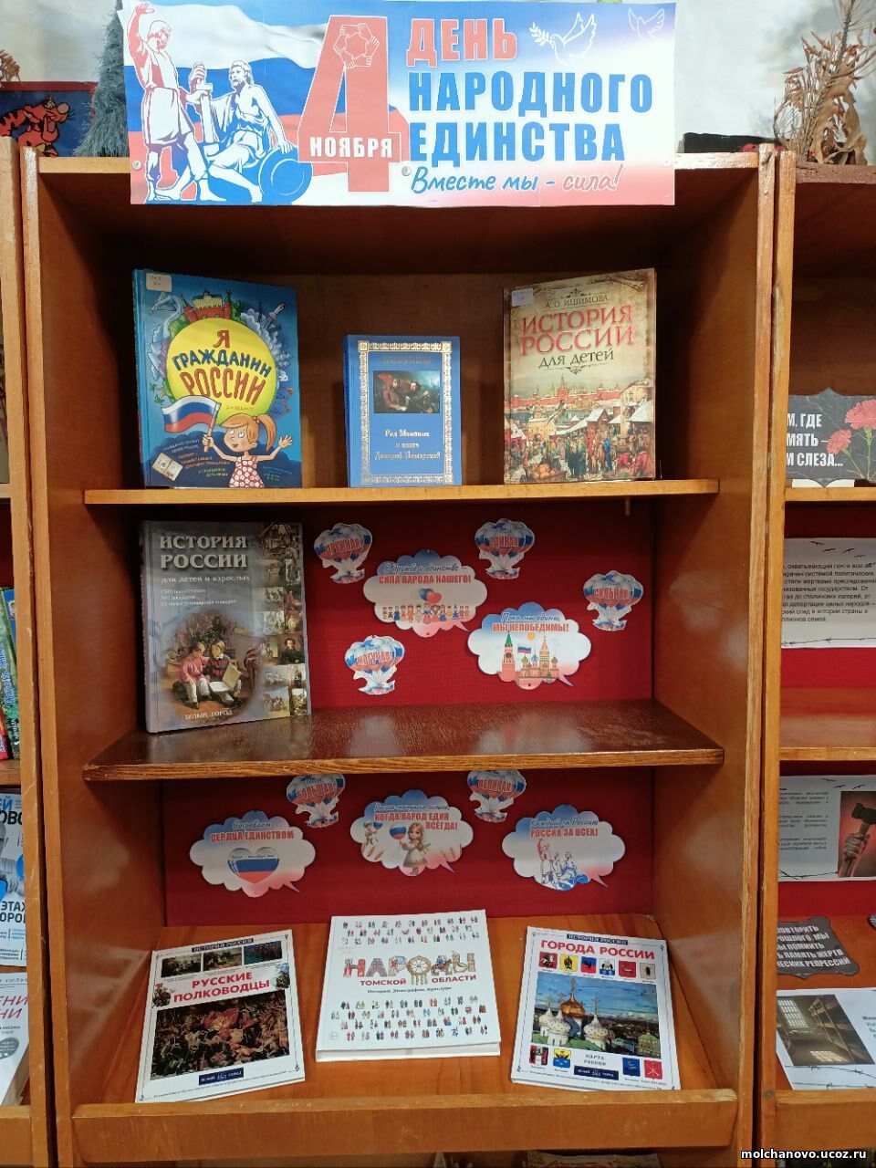 В рамках празднования Дня народного единства в Сулзатской сельской библиотеке была проведена викторина для детей «Вместе мы едины», в которой ребята смогли проверить свои знания. Вопросы касались истории праздника, ключевых событий и личностей, связанных с Днем народного единства, а также народов России. Ребята вспомнили текст государственного гимна России, собирали пословицы, разгадывали кроссворды. Участие в викторине способствовало развитию познавательного интереса к истории. Дети получили новые знания, расширили свой кругозор. Также в преддверии праздника в Сулзатской сельской библиотеке была оформлена тематическая выставка «4 ноября – День народного единства». На выставке представлены книги об истории России и русского народа, о героях и событиях смутного времени, прославленных русских полководцах и многом другом.